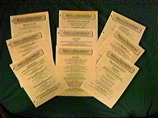 2) If you want to use my Inter<>Dependence formatting, all you will need to do is tell me what you want in “footer”of each topic (your name, address & phone, etc.). I will send you either printer ready copies or MSWord files (your choice) of the 12 topics you choose.